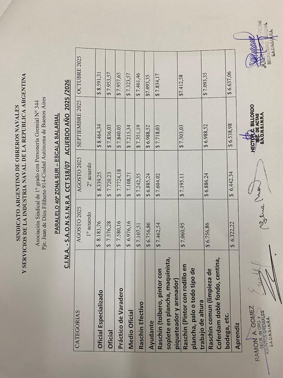 ESCALA SALARIAL CCT 518/07 Zona